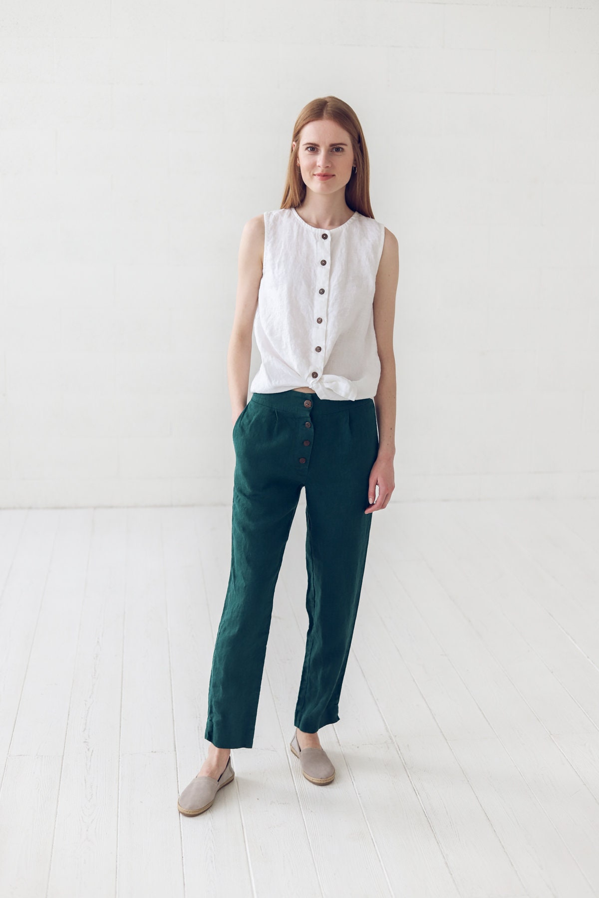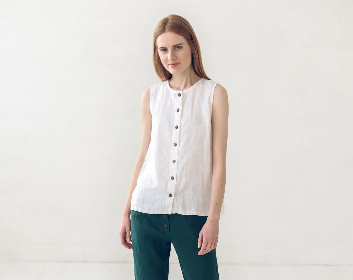 Be the first to review “Women’s Linen Sleeveless Button Front Top”
